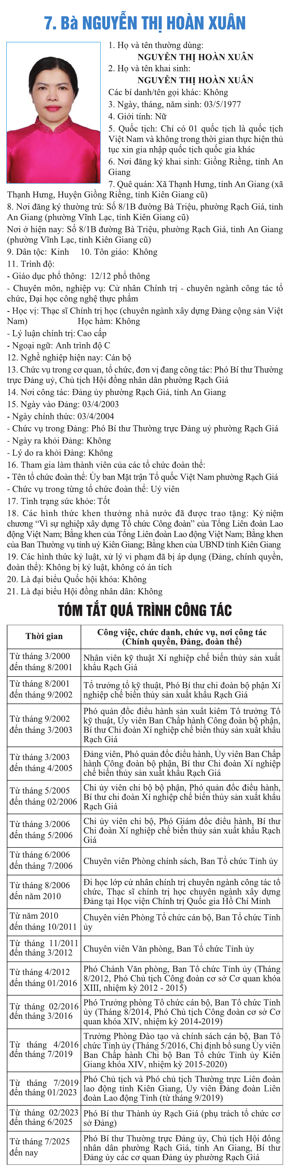 Bà Nguyễn Thị Hoàn Xuân Tóm tắt tiểu sử đại biểu ứng cử 01/03/2026 - aA + /ba-nguyen-thi-hoan-xuan (sokhcn.angiang.gov.vn) - TIN TỨC LIÊN QUAN Bà Trịnh Lộc Uyển Tóm tắt tiểu sử đại biểu ứng cử 01/03/2026 Ông Võ Minh Trung Tóm tắt tiểu sử đại biểu ứng cử 01/03/2026 Ông Đoàn Hữu Thắng Tóm tắt tiểu sử đại biểu ứng cử 01/03/2026 Bà Phạm Thị Như Phượng Tóm tắt tiểu sử đại biểu ứng cử 01/03/2026 Ông Nguyễn Thanh Phong Tóm tắt tiểu sử đại biểu ứng cử 01/03/2026 Bà Huỳnh Thị Ngọc Du Tóm tắt tiểu sử đại biểu ứng cử 01/03/2026
