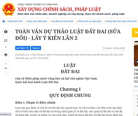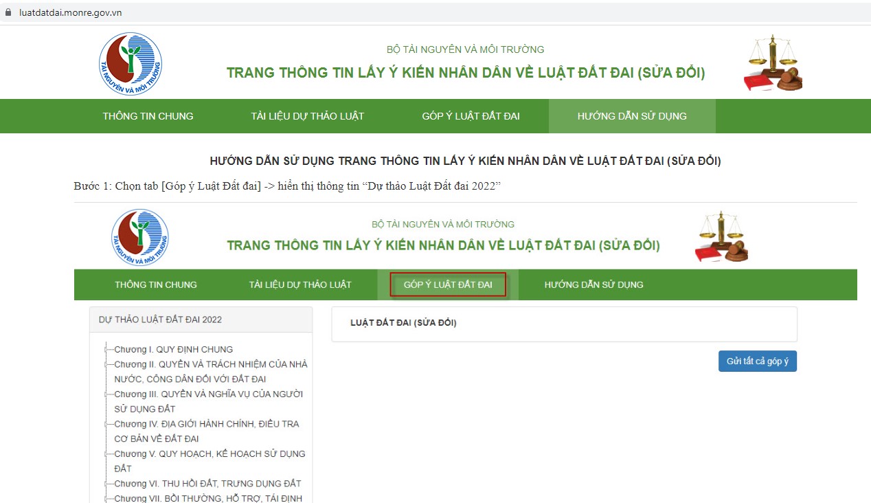 2. Link gửi ý kiến góp ý cho dự thảo Luật Đất đai:
